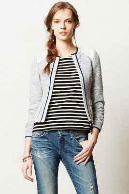You could go with a cardigan. But cardigans do have that unfortunate reputation for schoolmarmishness and a stolid, wooly, professorial air (which, surely, explains why I adore cardigans of all shapes, colors, and cuts).